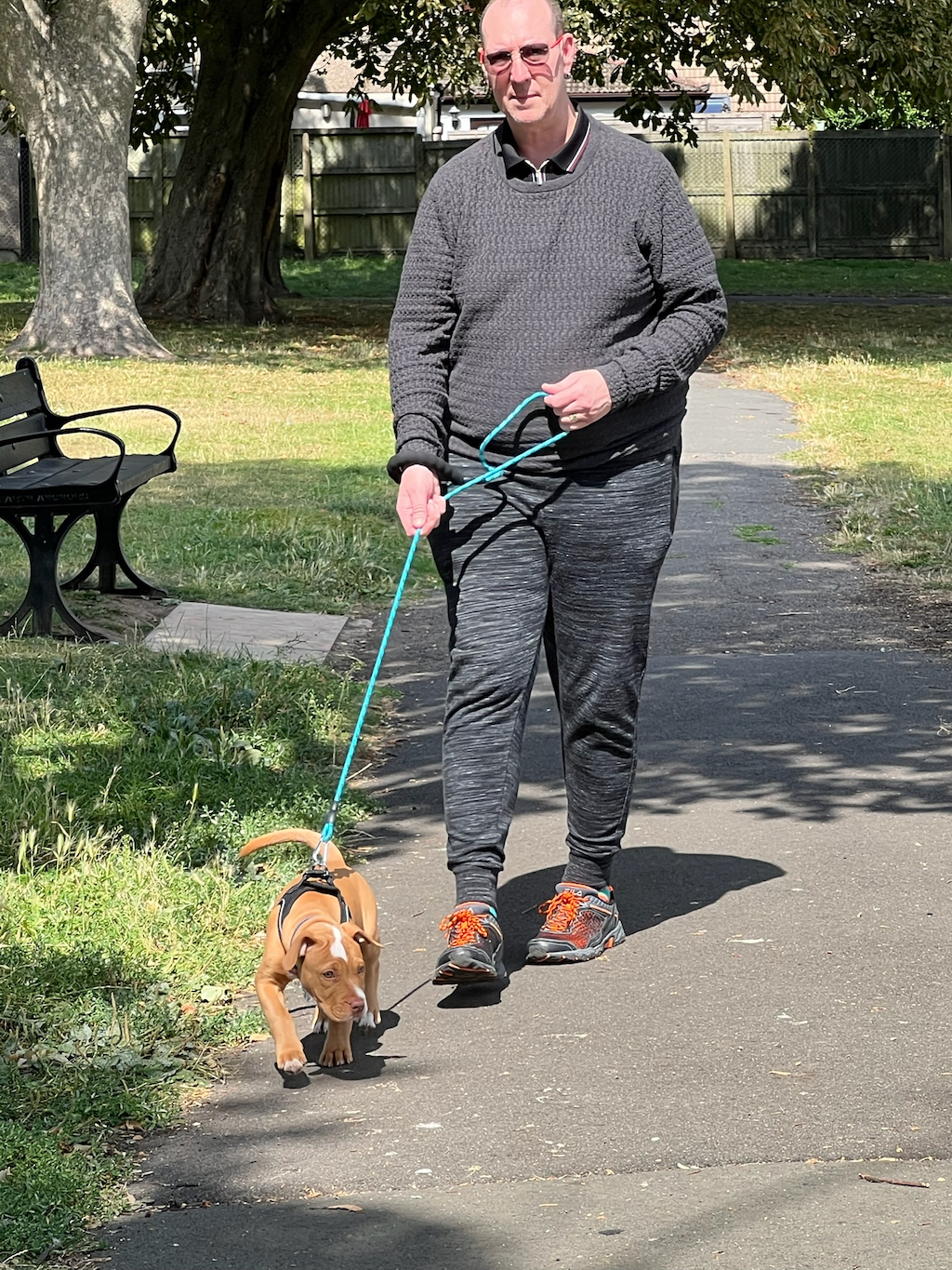 Finally all jabs done and ready to go, Hectors big day for his big walk, a lap around ‘Mellowes Park’.