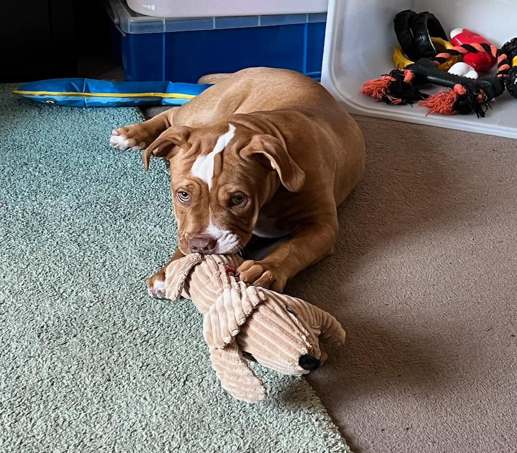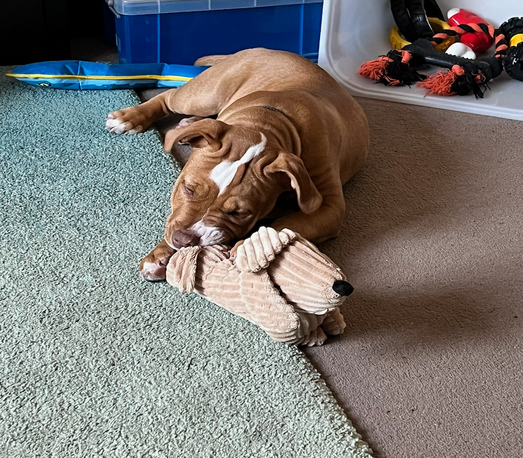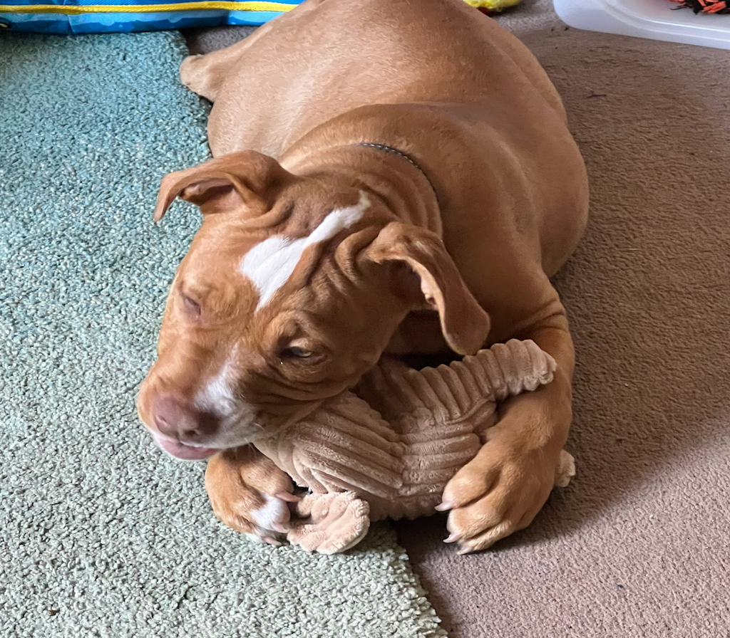 We all know that Hector has his favourite cuddle companion 'little grey' that he takes to bed with every night and part of the PetFace range is a sausage dog that I thought he might also like. Turns out that the sausage dog is the next victim to his chew and destroy game plan.