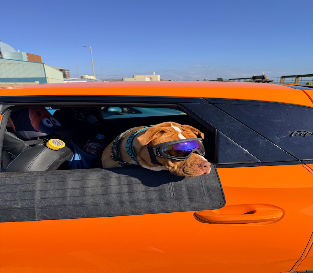 Not to be outdone Hector sported some wicked doggles and a camo cap.