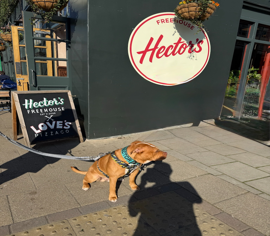 Using the PawPal app we could locate dog friendly locations in Brighton and surrounding areas, I stumbled on a pub called 'Hectors' it was a photo opportunity we had to explore. As Wayne and I had a swift half, Hector devoured some coconut macarons and a bottle of refreshing water.