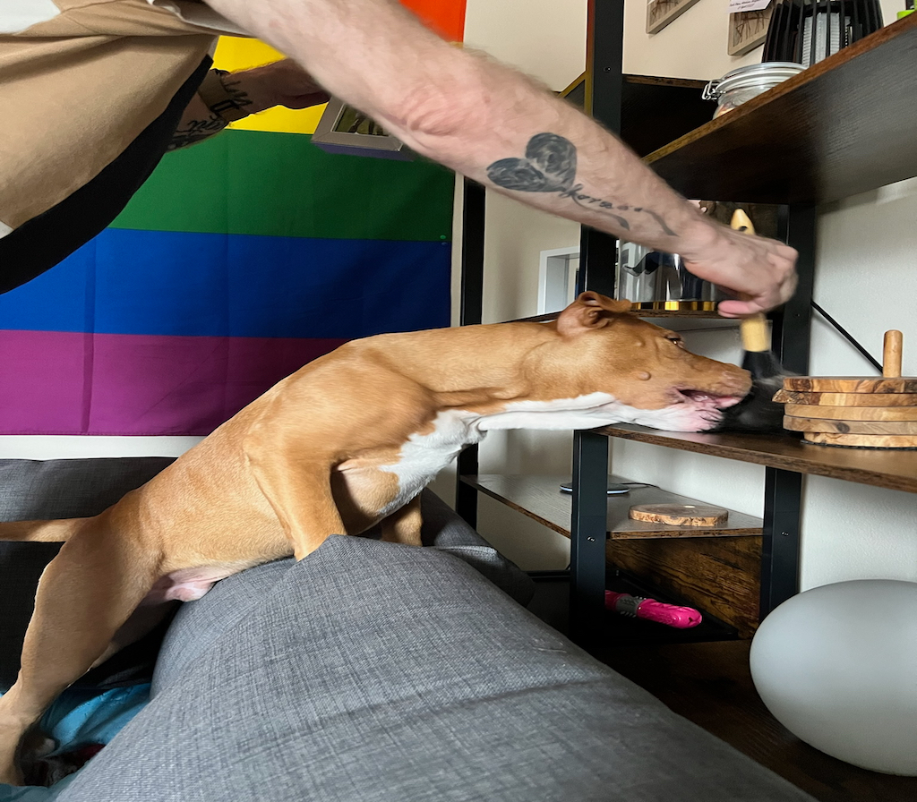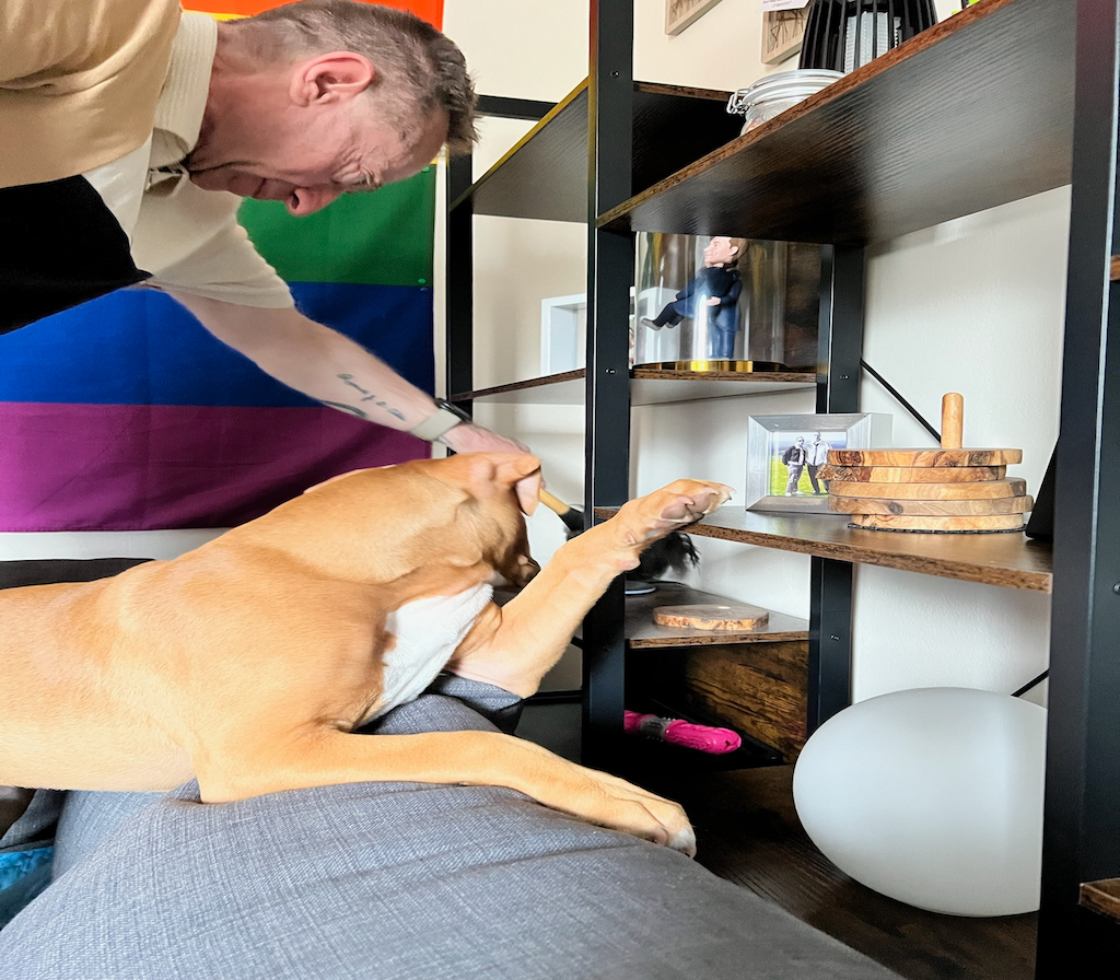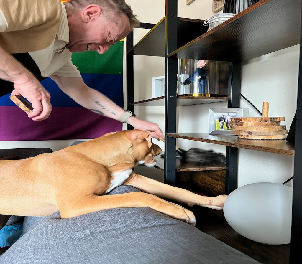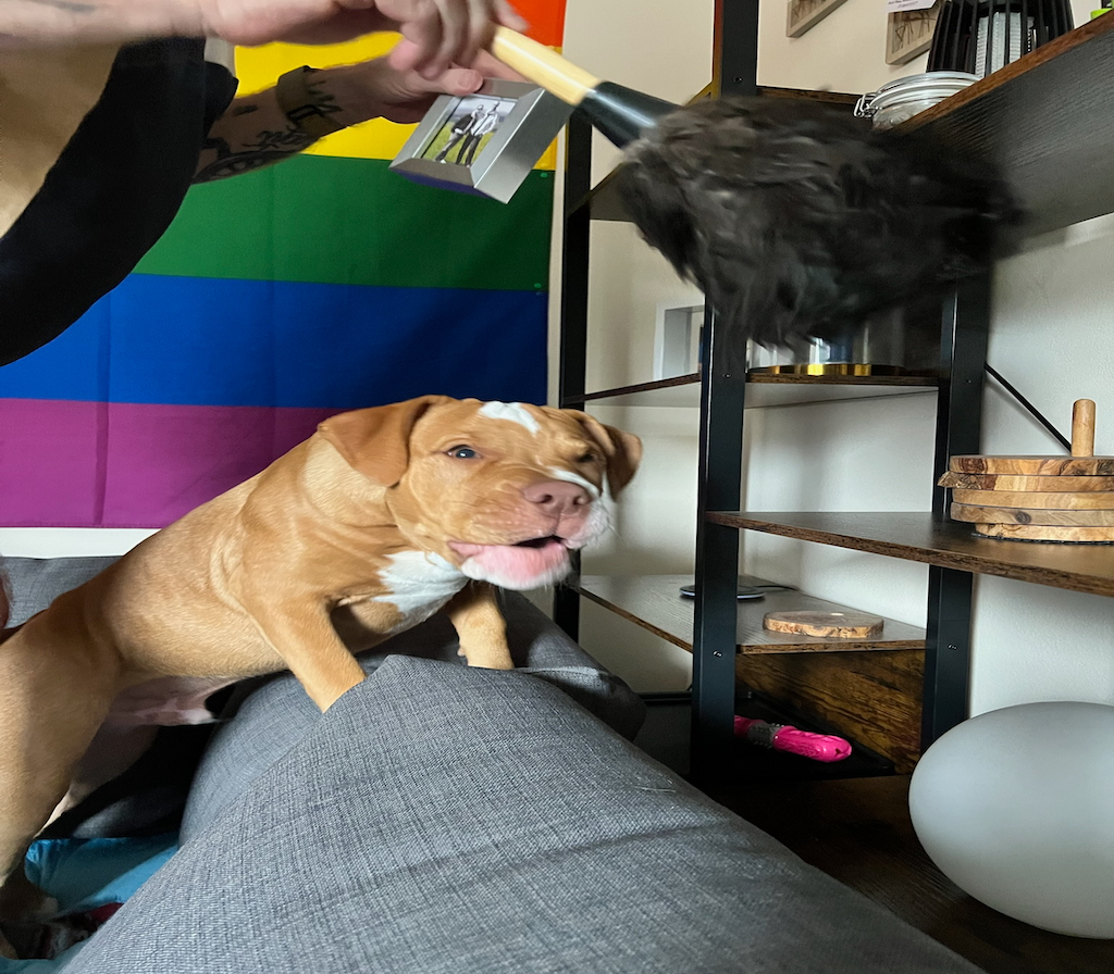 Today as Wayne dusted the lounge unit someone thought he would help daddy.