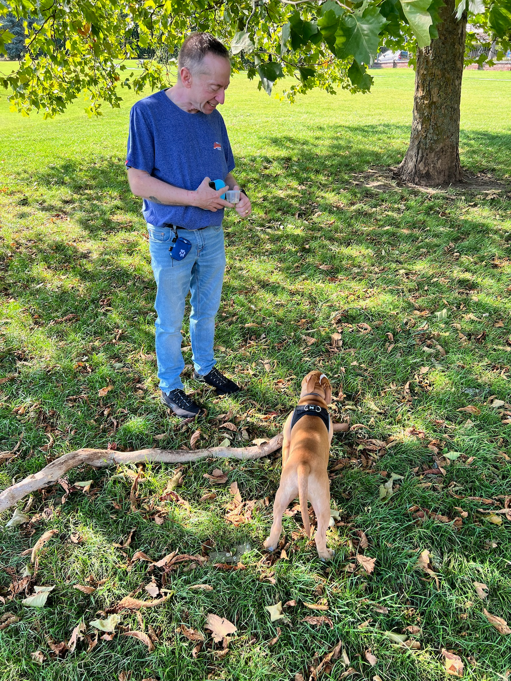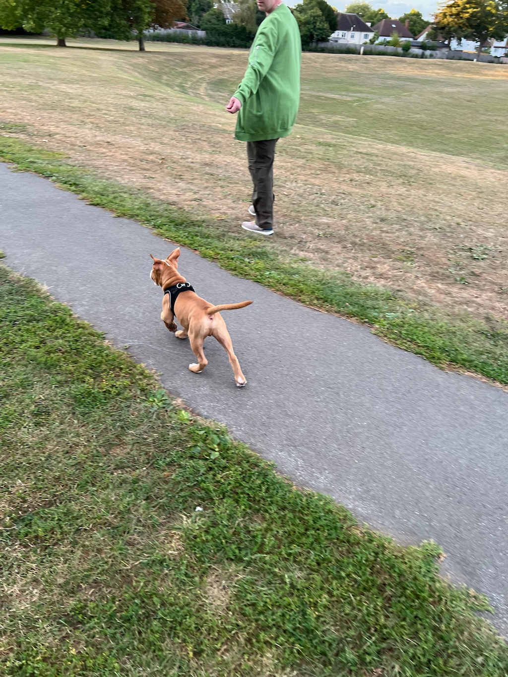 Another major day in the life of our puppy boy. Today, whilst walking round the park, we saw a lady who we’d met once before. Her name is Leslie and she has two dogs, Edith and Trixie. She talked us round and gave us the confidence to let Hector off his lead. She convinced us that as we are his pack leader, that as we walked away from her, that he would follow. It was the ultimate test so far… and it worked. We walked about 50 feet away from where she was standing with her two dogs, who Hector had been playing with, and suddenly without being called, he came running towards us. It was a highly emotional moment.