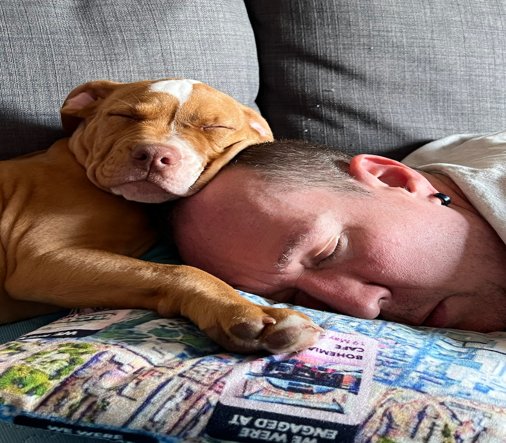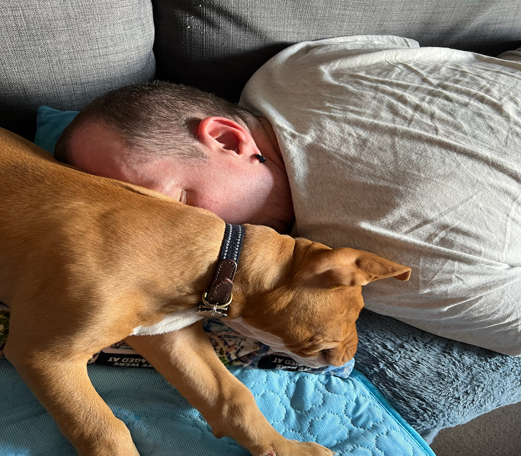 After park walks and play dates both myself and Wayne are exhusted and I managed to grab a powernap only to find out that Hector has been using me as a pillow.